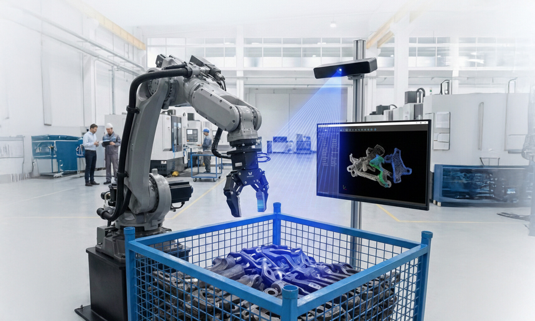 我們提供一套針對重載、無序金屬加工環境設計的自動化解決方案。採用領先的 3D 視覺技術與 AI 演算法、引導取件系統,將核心技術與重載取放完美整合。