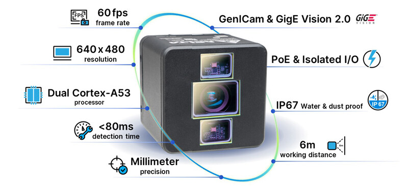 With a built-in dual-core ARM-based processor, the DMV-T can process the images at the edge and provide <80ms detection time