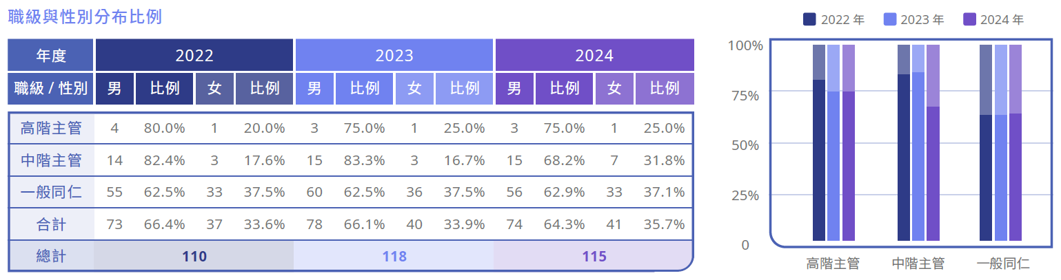 為此,致力提供同仁完善的工作環境,提供平等且包容的組織,吸引多元且優秀之人才加入。建立獎勵高績效表現的員工之薪酬制度,同時對於員工的福利也一向極為重視,期許員工能在多重生活保障下,安心愉快的工作。
