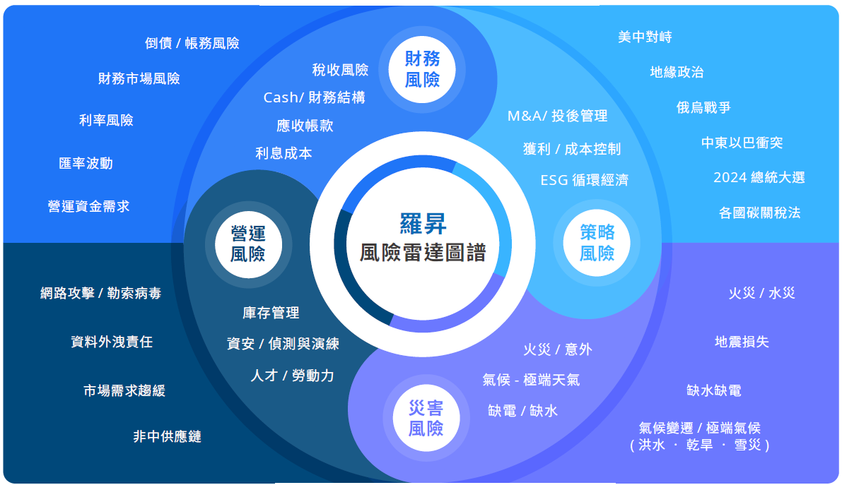 羅昇於 2020 年起參與母公司佳世達風險管理組織舉辦之永續與風控季會,持續關注集團可能面臨之潛在風險,於 2020 年 11 月 正式成立「風險管理委員會」 (Risk Management Committee, RMC) ,建立主動之風險管理機制,以利相關單位能藉由風險管理程序及時因應風險事件,降低或避免風險事件衝擊,同時增加人員風險意識,以確保羅昇之永續經營。本公司的風險管理著重公司治理的風險管理系統及風險轉移規劃:策略、財務、營運及危害風險,由風險管理委員會管理。明文訂定本公司風險管理遠景及政策與程序,有效管理超過公司風險容忍度的風險,運用風險管理工具使風險管理總成本最佳化。